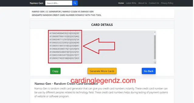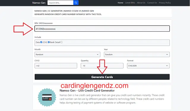 Open Namsogen.co and select Create Cards after pasting the bin into the search bar.